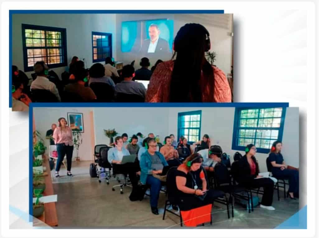 Serviço integral em tradução simultânea com equipamento e intérpretes para eventos online e presenciais.